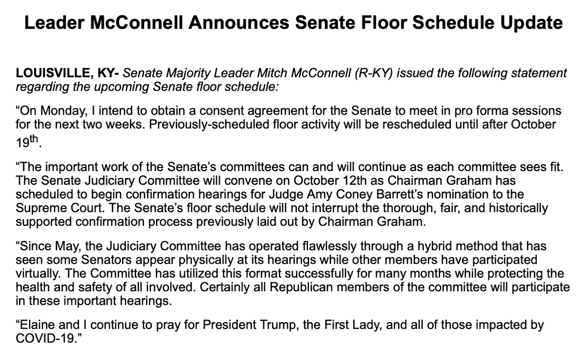 MORE: "The Senate Judiciary Committee will convene on October 12th as Chairman Graham has scheduled to begin confirmation hearings for Judge Amy Coney Barrett’s nomination to the Supreme Court," McConnell says. http://abcn.ws/3nhXm8u https://twitter.com/ABC/status/1312437072880230401 …
