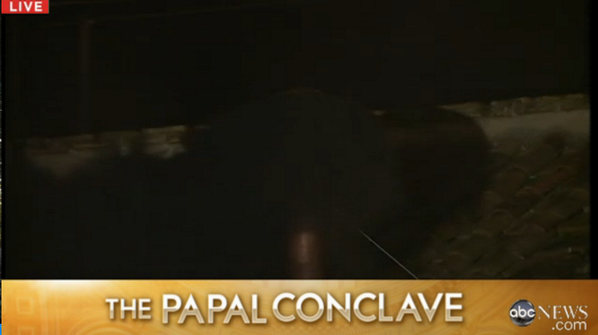 “@ABC: Smoke! Black smoke. Watch a special report from the Vatican live now: http://abcn.ws/live #conclave pic.twitter.com/mNIRNVdBzg” 1era
