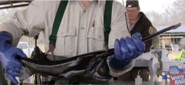 Prehistoric paddlefish makes return to US lake: http://abcn.ws/1fKd7iJ pic.twitter.com/RzhzkWOvE5