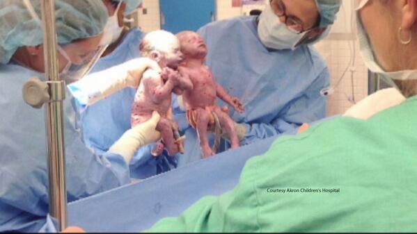“@ABC: Rare mono mono twins pictured holding hands shortly after birth heading home soon: http://abcn.ws/1mGjVxw pic.twitter.com/kzBHUb93VH”r