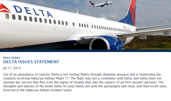 @ABC: Delta Airlines says it will not route flights through Ukrainian airspace "out of an abundance of caution"Thanks. Twitter will use this to make your timeline better. UndoUndo