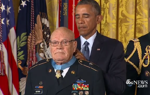 “@ABC: Pres. Obama awards the Medal of Honor to Army Command Sgt. Maj. Bennie G. Adkins. pic.twitter.com/24sbb1CT0V”