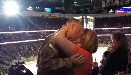 @ABC: Soldier returns from Afghanistan, surprises wife at Ducks game: http://abcn.ws/1BE8LEg pic.twitter.com/iK6cFDMU6k” Freaking awesome