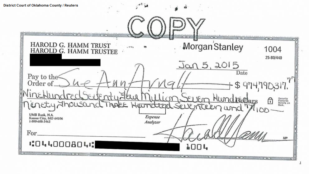 @ABC: Ex-wife rejects $974,790,317 personal check from billionaire oilman: http://abcn.ws/1tKd09u -@skimm pic.twitter.com/IxJafiLgpH”@Mzc0831