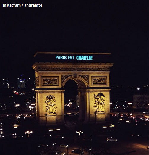RT @ABC: "PARIS EST CHARLIE" - Paris' iconic Arc de Triomphe illuminated with message that "Paris Is Charlie" pic.twitter.com/HEKPjB23fS #fb