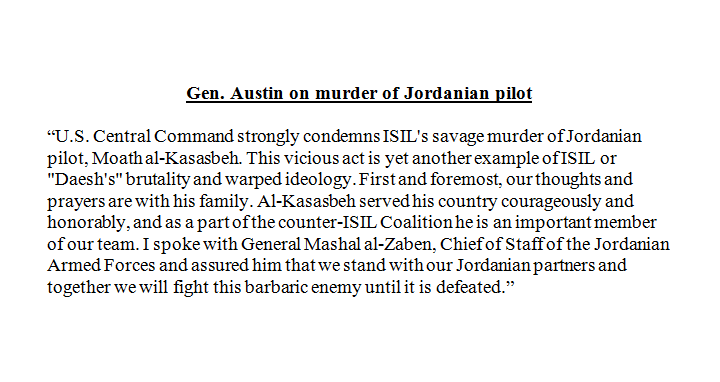 @ABC: US Gen. Austin tells Jordanian Gen. al-Zaben that "together we will fight#ISIS until it is defeated.” pic.twitter.com/zn1MLjoRVa”#talk?