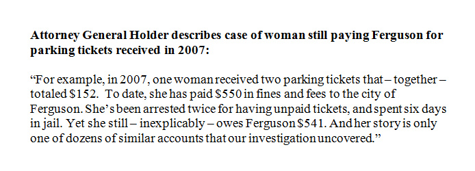 “@ABC: AG Holder describes the case of a woman who is still paying #Ferguson for 2 parking tickets received in 2007. pic.twitter.com/EITRPR8WBu”