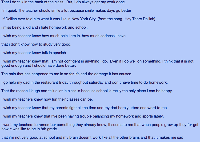@ABC: teacher asks Ss to write what they wish she knew: http://abcn.ws/1J80wk1 pic.twitter.com/Cgq3J7h8LI