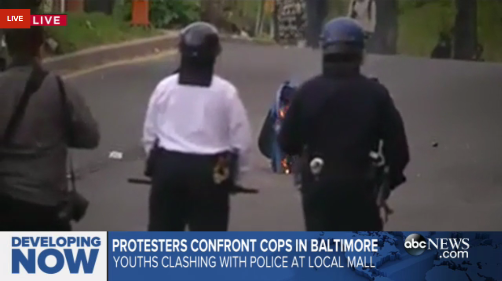 @ABC: LIVE: Demonstrators clash with police in#Baltimore: http://abcnews.go.com/live -@ABCNewsLive pic.twitter.com/rd5hmWVjVC”#apugchhs