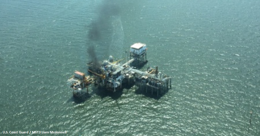 Workers evacuated from oil platform fire in Gulf of Mexico near New Orleans -light oil sheen seen for mile http://abcn.ws/1eliDK9 @ABC @USCG