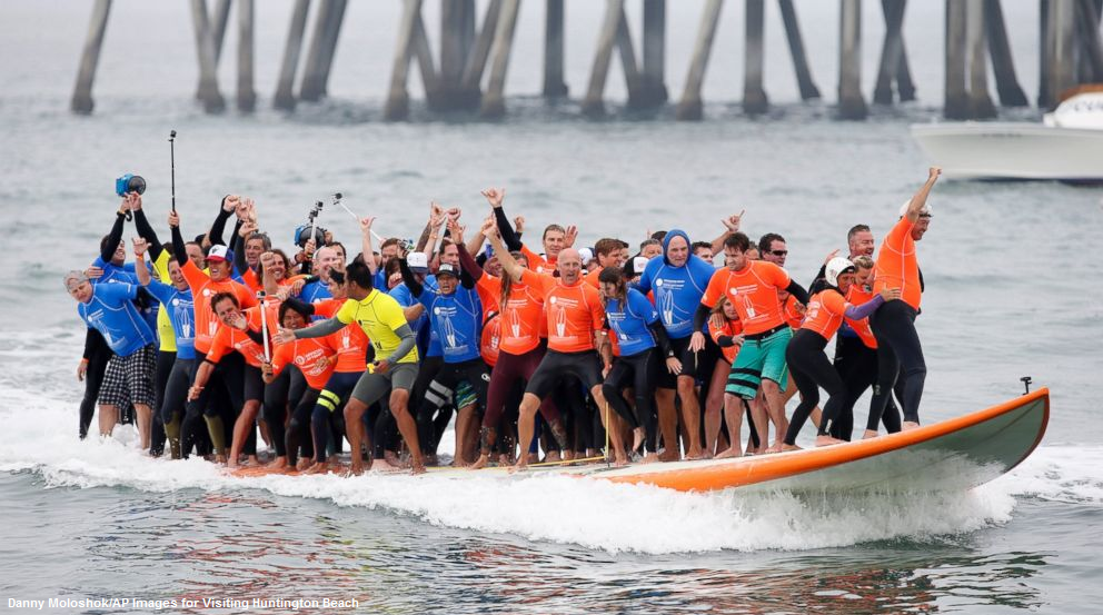 “@ABC: 66 surfers set record for most people riding a board at once: http://abcn.ws/1ezHWsA pic.twitter.com/l9hVWjayVJ” @MorganNicole_6