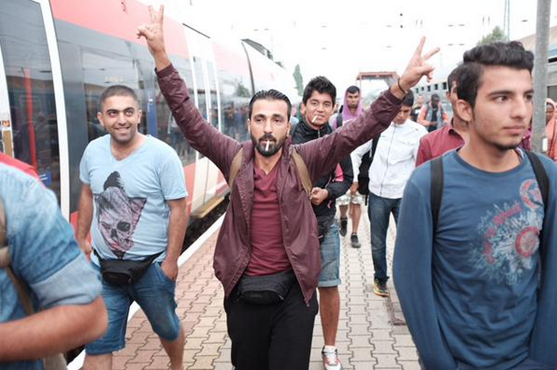 @ABC Refugees arrive at Hegyeshalom station on the Austria Hungary border. They look more like soldiers in this pic.pic.twitter.com/7bT0SywjvT