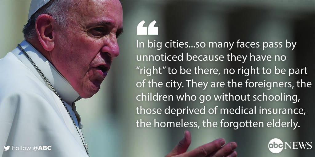 @ABC I pray that the Pope's words were received by all. So many people need help. As Christians, we all need to do better.Thanks. Twitter will use this to make your timeline better. UndoUndo