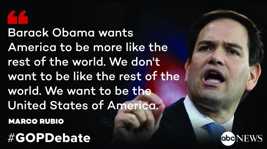 @ABC@ImpactDemocracy#Rubio last time I checked we're still the United States of America. What country are you running for president of?Thanks. Twitter will use this to make your timeline better. UndoUndo
