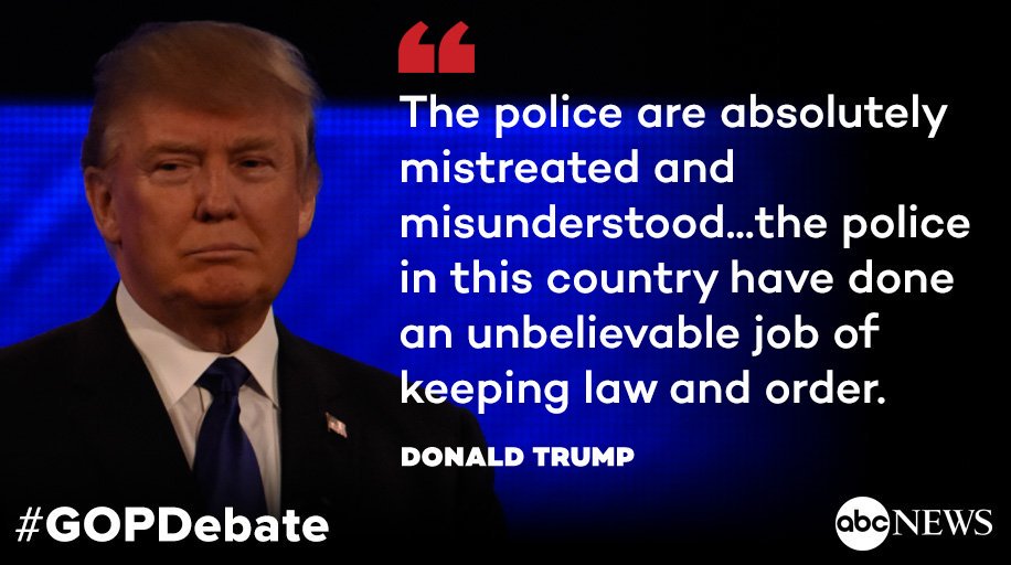 @JASONTERRY21@ABC Best line of#ABCDebate#Trump-- "The police are mistreated." Cc@JebBush#gopdebatepic.twitter.com/TQ8FUJ20B6