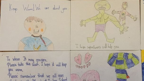 @GeoffHunterNYC@ABC Maybe read the article before you comment. Point was they collected scarves to give and attached the notes to them.