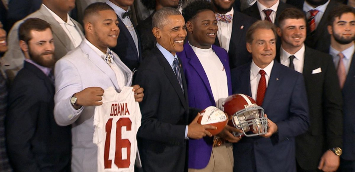@ABC Pres. Obama honors Alabama Crimson Tide at White House: "Call me O'Bama!"pic.twitter.com/rRnESoZ7tS