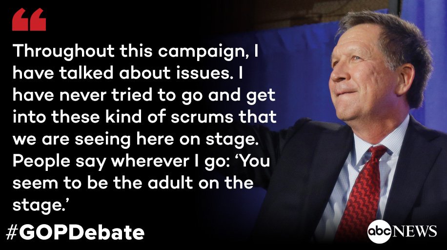 Kasich seems like an adult in comparison the the name-calling children next to him. He is still dangerous . #GOPDebate @ABC