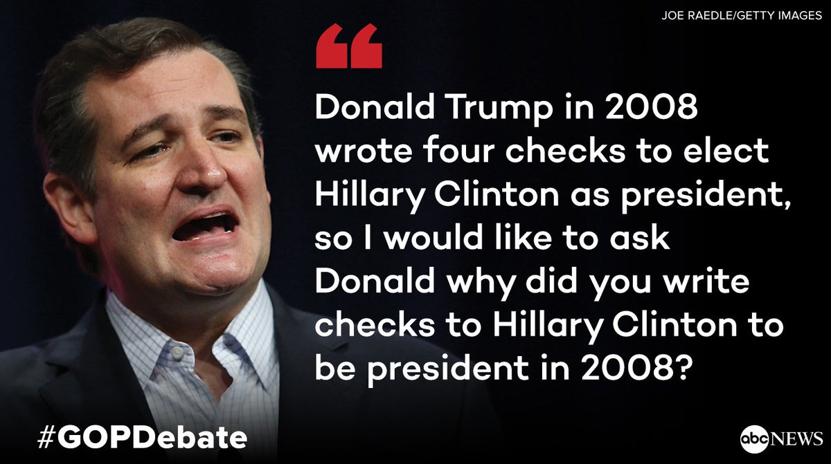 @ABC@realDonaldTrump was a private business owner he can give to anybody he want Ted Cruz has always in a politicianThanks. Twitter will use this to make your timeline better. UndoUndo