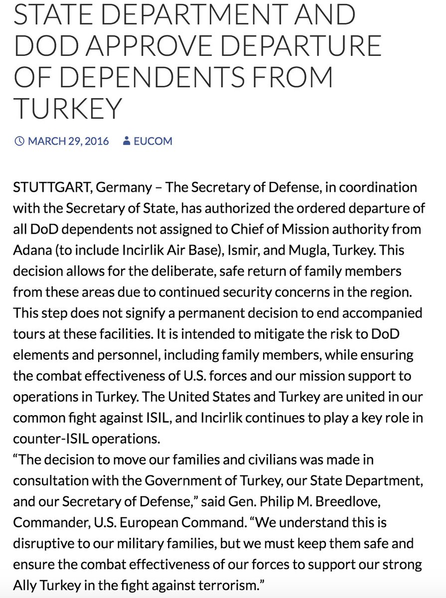 NEW: US orders all DOD dependents to leave Southern Turkey due to continued security concerns in the region.pic.twitter.com/kQCjJFGv44