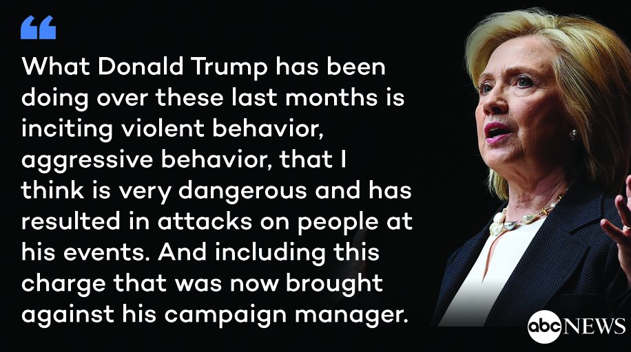 @ABC If Hillary believes that was violent behavior, then Hillary must have thought Bengazi was world war 3!Thanks. Twitter will use this to make your timeline better. UndoUndo