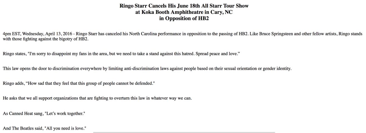 @ABC JUST IN: North Carolina residents learn Ringo Starr was going to have a concert in their state
