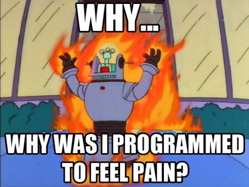 That's stupid. A robot cannot actually "feel the pain".