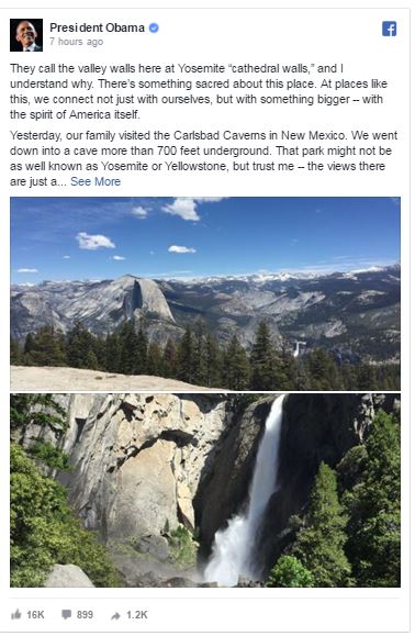Thank you President Obama for reminding us how wonderful our National Parks are.