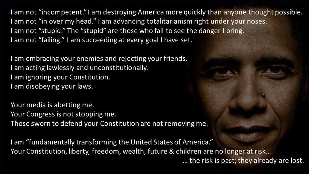 Who's kidding who? This guy has all but destroyed the U.S. and enjoyed every minute of it.