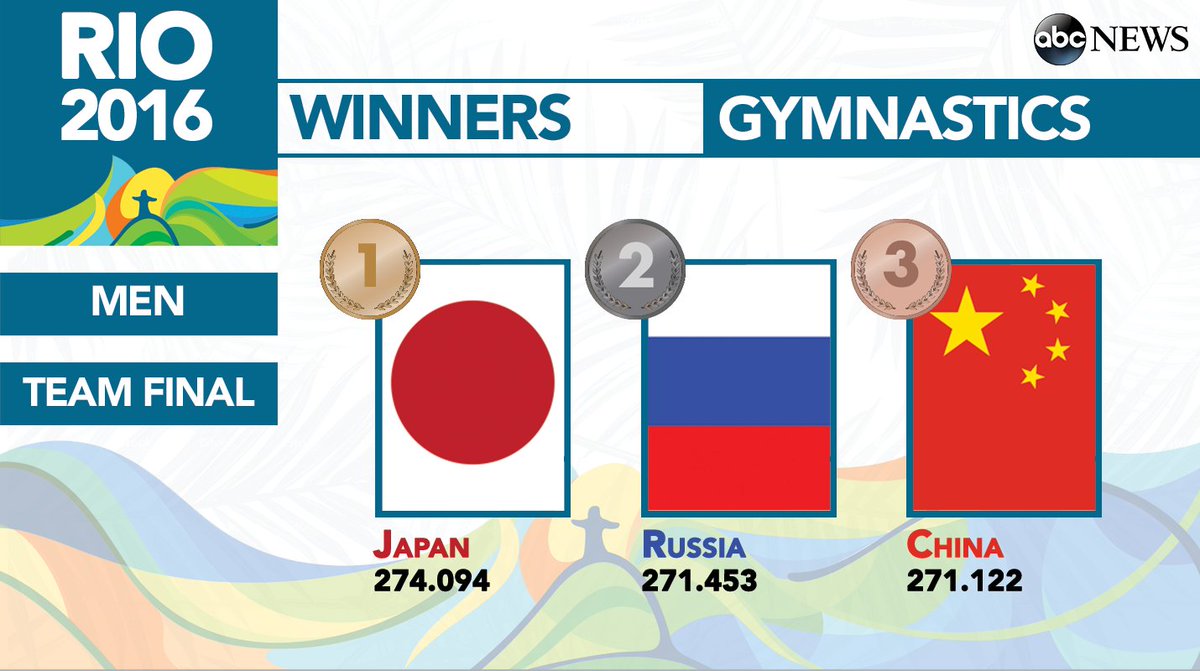 Rio 2016 #ArtisticGymnastics: #USA men finish in 5th place in the Team Final. #JPN wins the #Gold Medal.pic.twitter.com/2rnTSdz0B7