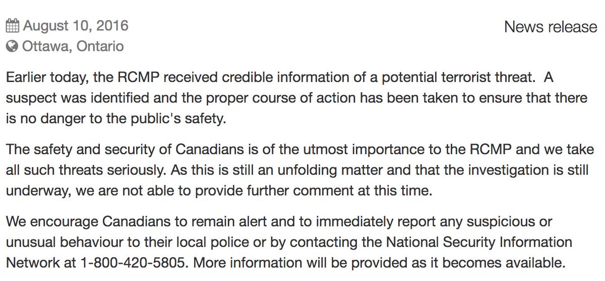 "Potential" terrorist threat on Canadian soil thwarted, Royal Canadian Mounted Police say. http://abcn.ws/2aTQjAa pic.twitter.com/nRLr8pxpRy
