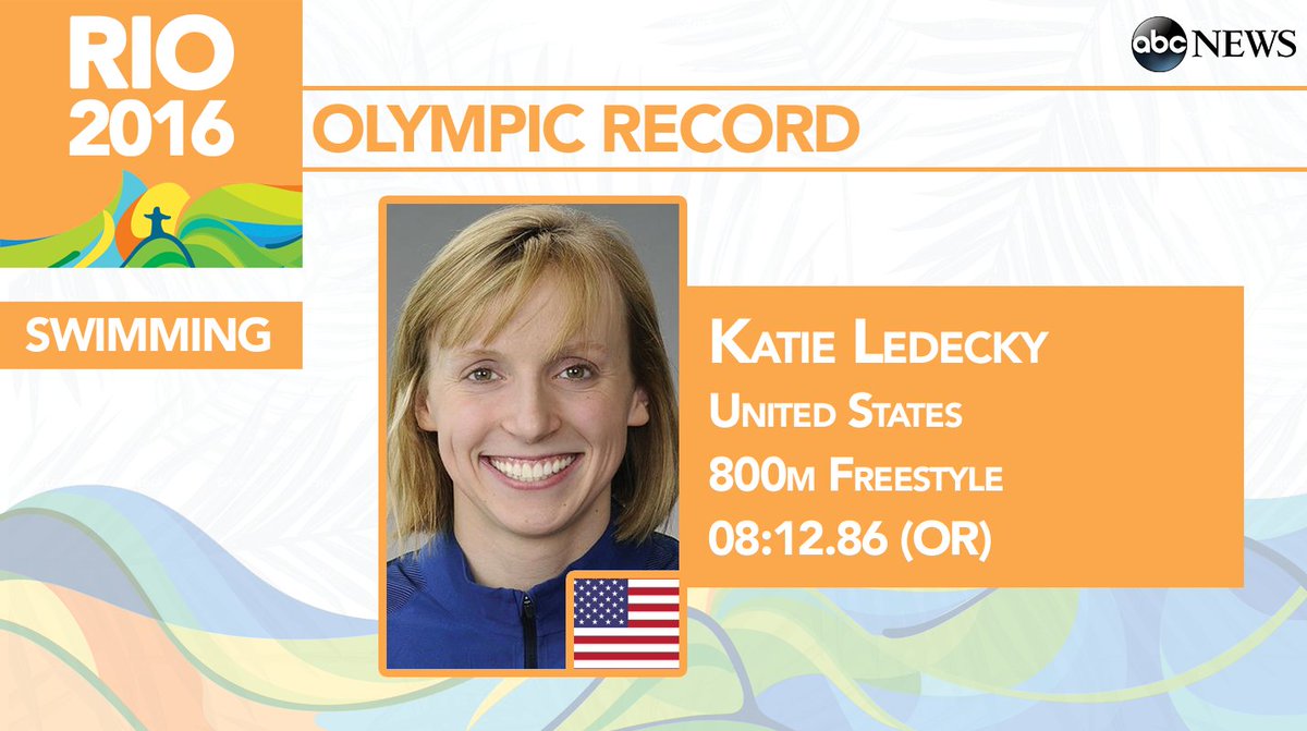 @katieledecky sets an#Olympics Record with time of 8:12.86 in the Women's 800m Freestyle Heats.pic.twitter.com/TOZGRU5iNg