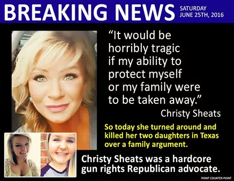 Nah he must be an Islamic jihadists Muslim. You know, blame the usual. Too many guns in this country. Suit the NRA for every gun death