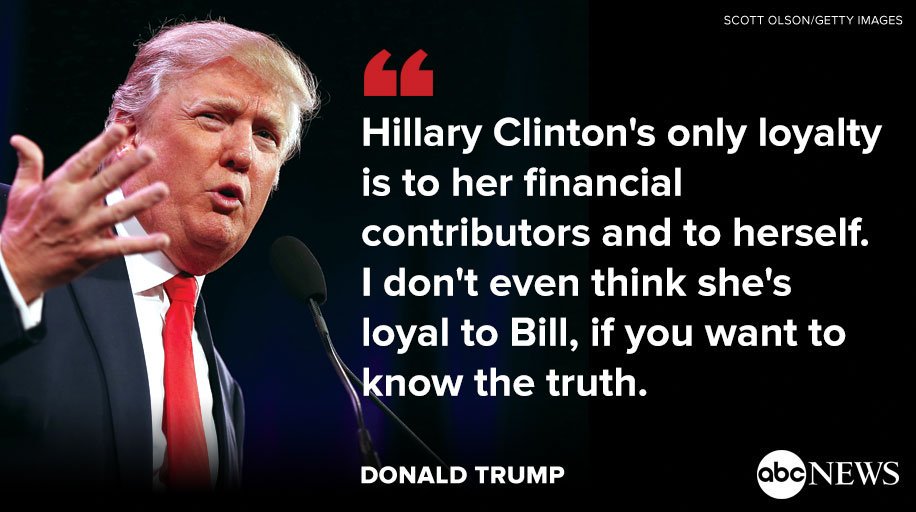 Not true, she's clearly also loyal to her pantsuit maker - god knows why, she's a bloody fashion disaster with bad hair to boot.