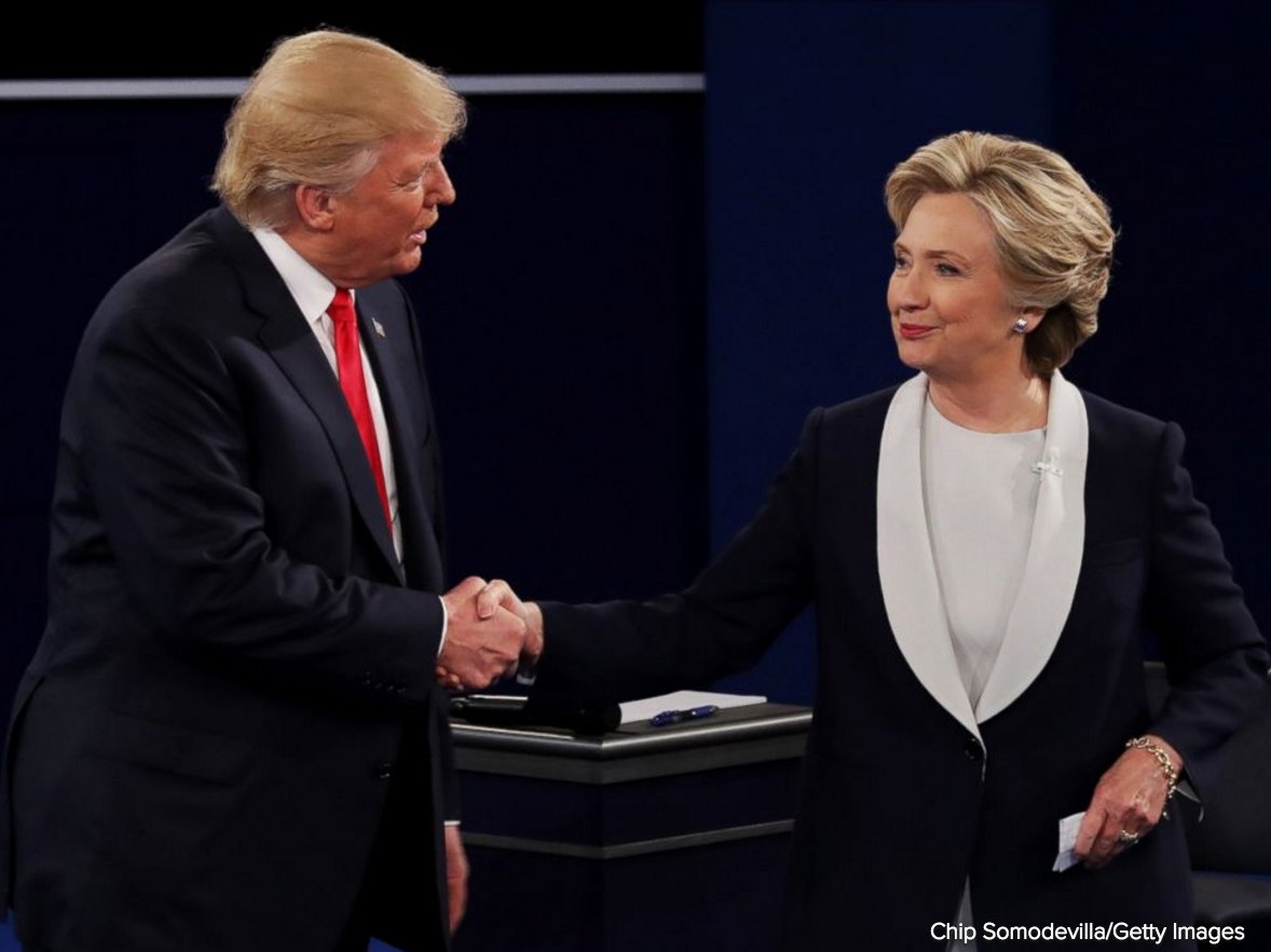 Hillary Clinton and Donald Trump shake hands at the end of debate, after declining to do so at the start. #Debatespic.twitter.com/t7mn7xoGrz