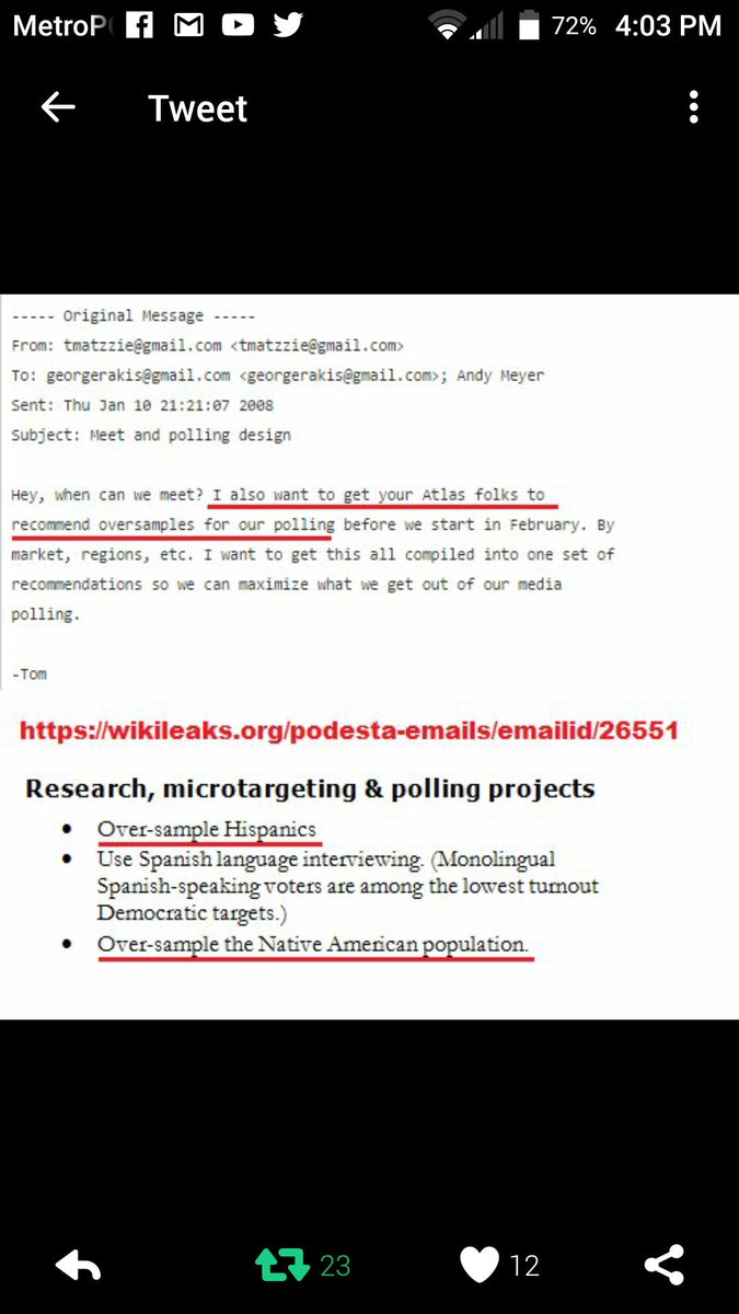 We didn't believe that.Just read #PodestaEmails16 where pollster lays out over sampling on polls to make her look like she is winning