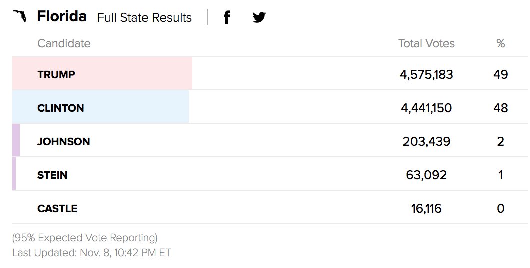 In Florida, with 91% of precincts reporting, just over 100,000 votes separate Trump and Clinton. http://abcn.ws/2femBYP pic.twitter.com/5or5zlWZQs