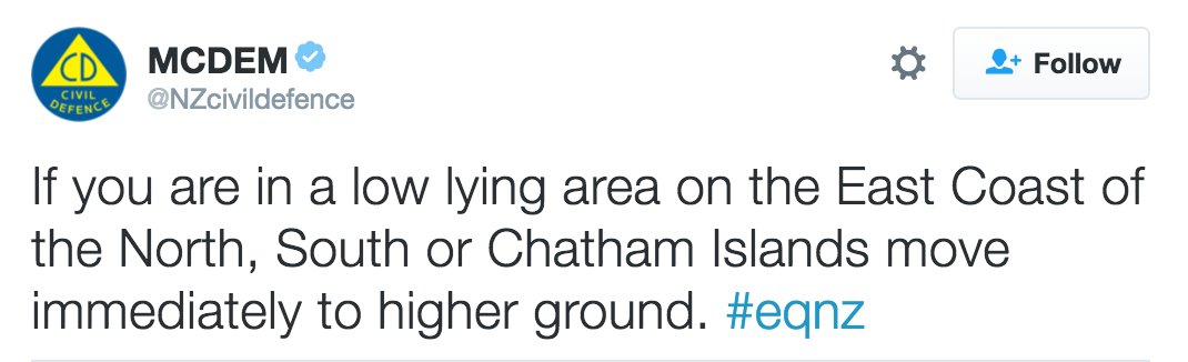 LATEST: New Zealand warns residents in low-lying areas to move to higher ground in advance of tsunami waves http://abcn.ws/2g7nmnY pic.twitter.com/sAokGlNhd5