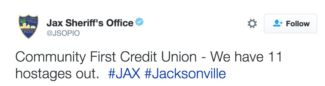 BREAKING: 11 hostages have been released amid attempted bank robbery in Jacksonville, Florida, police say. http://abcn.ws/2gpYSpi pic.twitter.com/VgdCs8aYjy