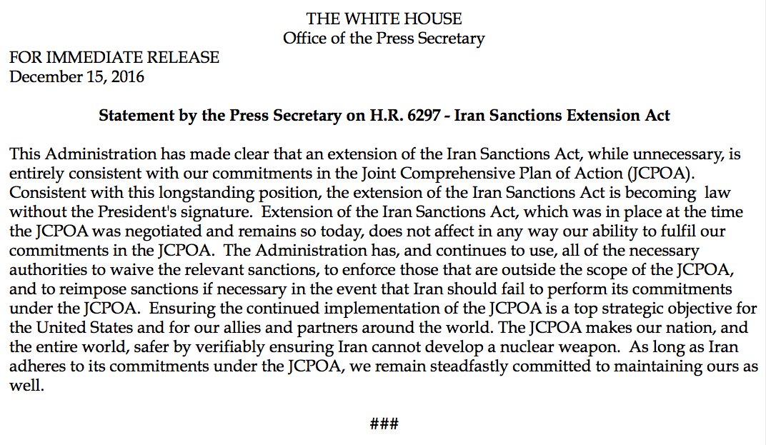 Iran agreement with no congressional approval....New sanctions with no pres signature. Nice work Obama.