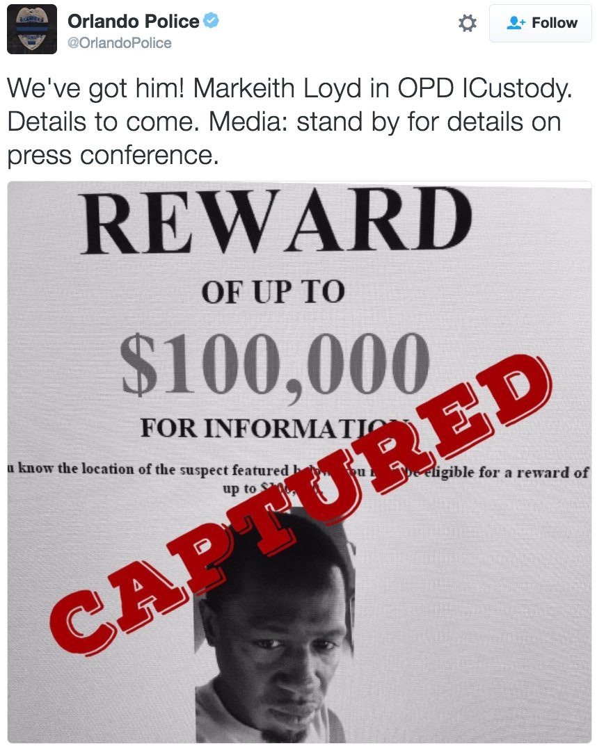 JUST IN: Orlando police say they've captured man suspected of gunning down veteran police officer. http://abcn.ws/2iF0fOq pic.twitter.com/jJVTB9pV9z