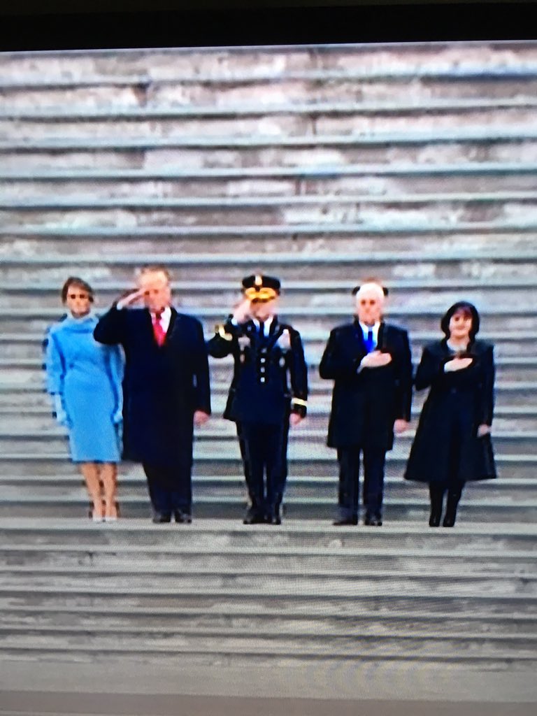 Somebody finally told Trump to button up his coat so his red tie hanging down to his crotch won't distract from the pageantry