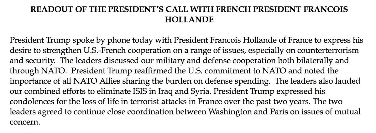 @fhollande communique for a better understanding of this call, beleive me#Trump - 1 more reply