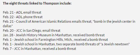 @ABC: Man arrested today not believed to be main suspect behind recent rash of bomb threats to JCCs, officials say http://abcn.ws/2miQ33G ” - 1 more reply