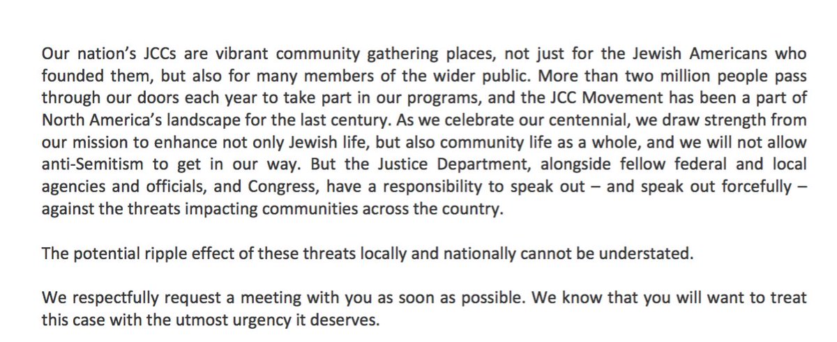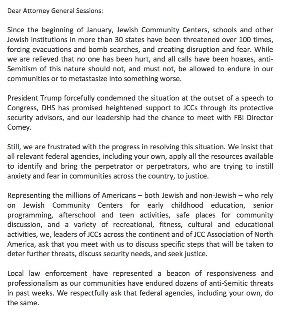 MORE: JCC Association writes letter to AG Sessions on threats: "We respectfully request a meeting with you as soon as possible."pic.twitter.com/hlwqn8XLb4