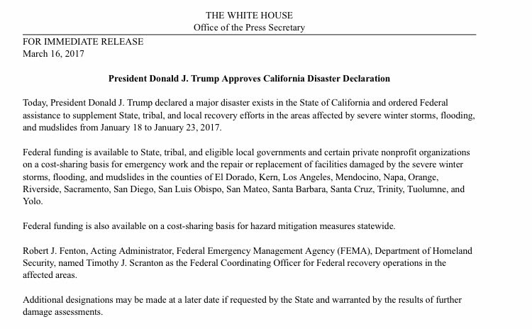 @realDonaldTrump u sorry son of a..... Californians been dealing w/this 4 months. Tyrant retaliated & withheld funds 2get back at CA - 1 more reply