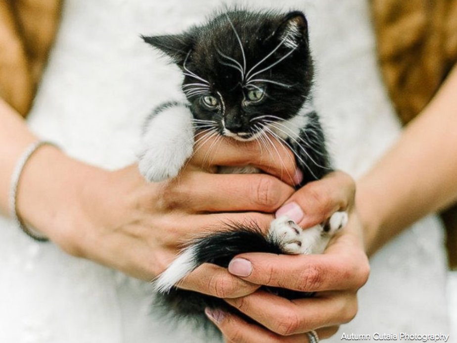 Even if it was synthetic, her fur is contradicting the purpose of taking the kitty to her wedding.