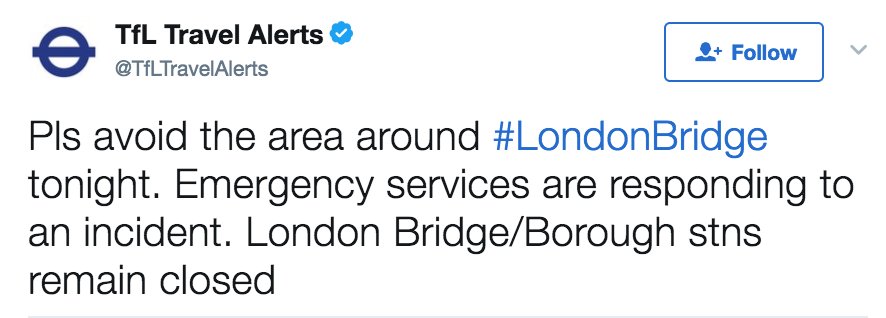 MORE: London Ambulance Service: “Responding to an incident alongside other emergency services at London Bridge” http://abcn.ws/2rEgeEx pic.twitter.com/pTcENcDT7M