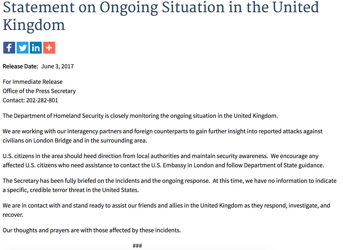 MORE: DHS after London terror incidents: "We have no information to indicate a specific, credible terror threat in the United States"pic.twitter.com/yXM23WxuLp