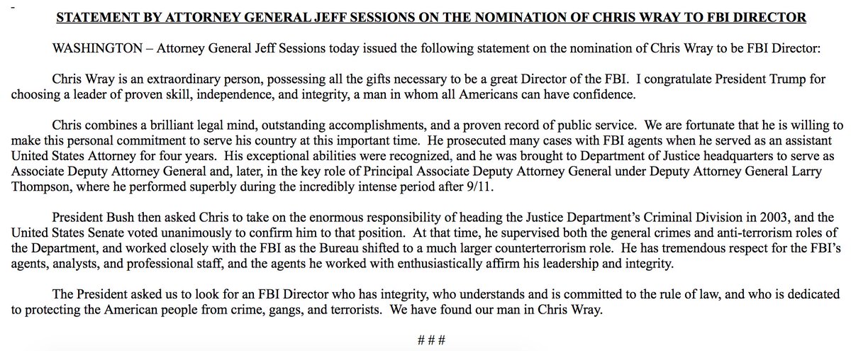 AG Sessions praised my brilliant FBI choice, so that's settled! It's not like I locked him in a room & belittled him until I broke him!